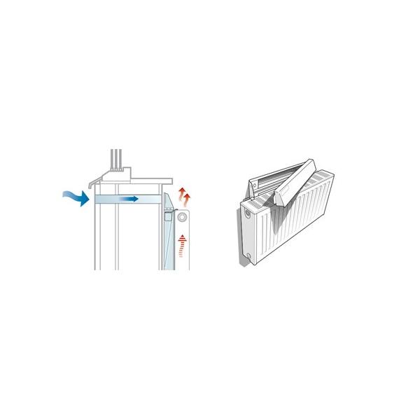 - Passar luftdonet Easy-Vent med toppanslutning monterad bakom element med höjden 300 mm
