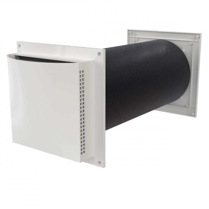 För tillförsel av friskluft till bostaden. Monteras i sovrum, vardagsrum eller andra områden där det finns behov av ventilation. Komplett väggventil med ljuddämpande egenskaper mot utvändigt buller. Med kondensisolering, filter och steglös reglering av luftmängden. Rekommenderad placering är högt på väggen och helst över en värmekälla. Med denna placering blandas uteluften och den varma konvektionsströmmen och man uppnår högsta komfort