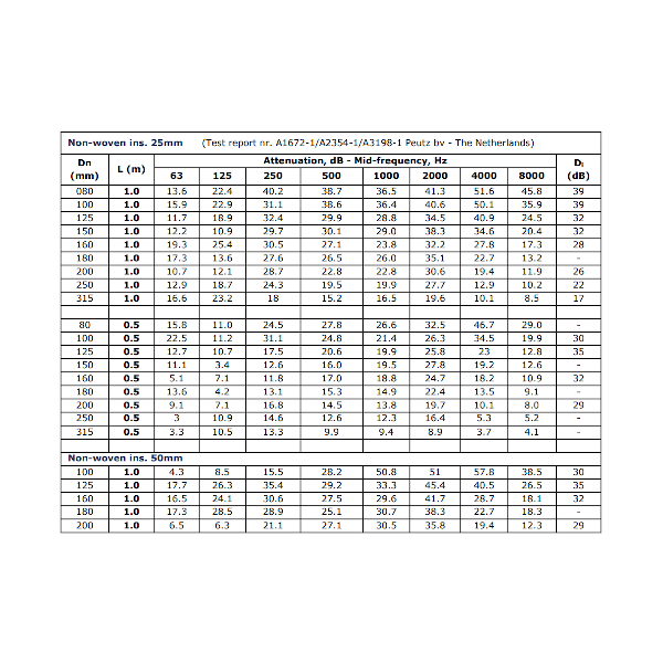 Ljuddämparslang 315mm anslutning, isoleringstjocklek 25mm