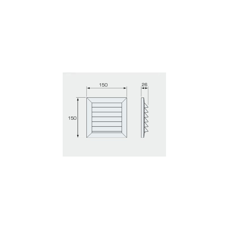 Rektangulärt galler 150x150mm avsett att användas på utvändig vägg, försett med försänkta skruvhål för skruvmontage. Skruvhålens hålbild passar Täckplatta 18 och 20. Försett med snäppfäste till Freshs väggenomföringsstosar. Kan förses med insektsraster 150. Tillverkat av UV-beständig konstruktionsplast i olika färger